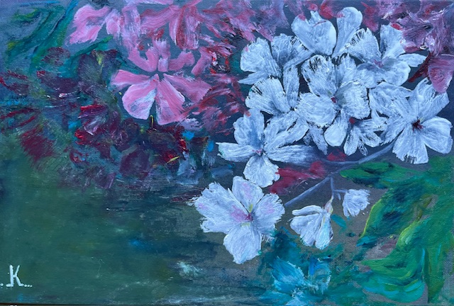 Une liberté d’expression plus grande, plus ludique qui me permet d’exprimer mes émotions, m’évader le temps d’une toile.